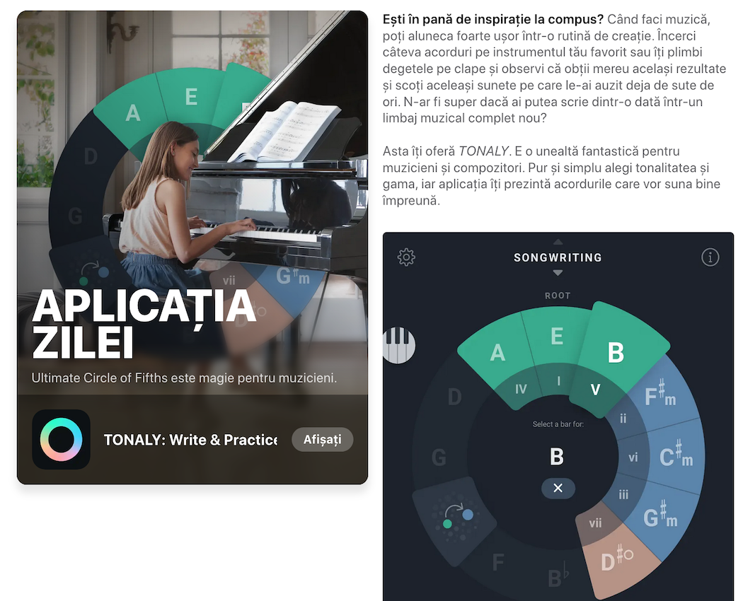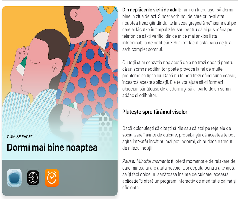 Since I took the "writing for a living" path, the goal was always to collab with these cool, worldly, and recognizable companies. That's why the projects with Apple are my Oscar-Blockbuster moment and therefore the first entry of my portfolio, 'cause I want everyone to see them. Keeping it short,it was mainly content writing work in Romanian, with some copy and localization mixed in, for two pillars of the Apple ecosystem, Apple Music and the App Store.
